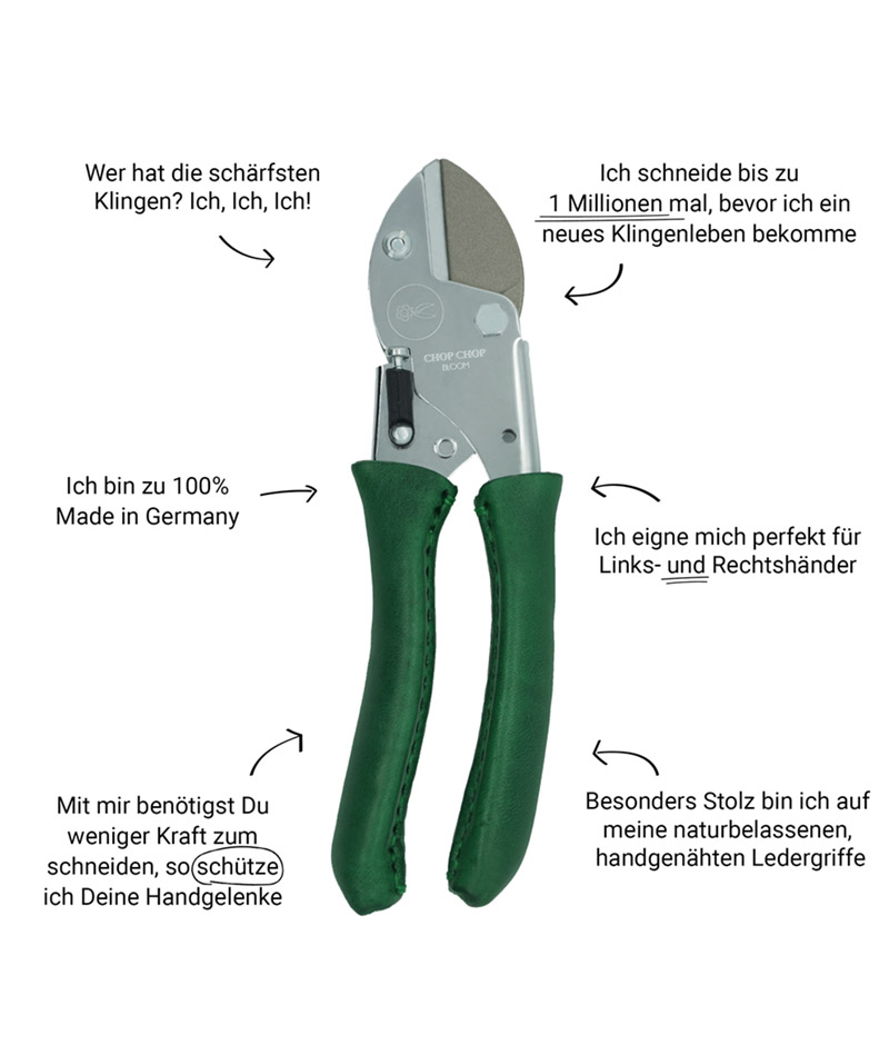 Die Chop Chop Bloom eignet sich für die Pflege aller Arten von Blumen und Pflanzen im Innen- und Außenbereich.