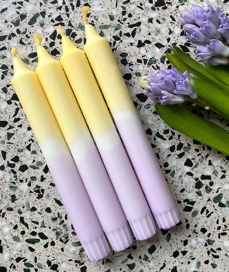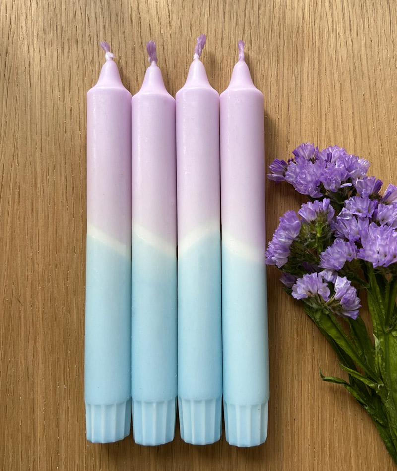 Stabkerzen, 4er-Set in Farbmix Lilac & Hellblau